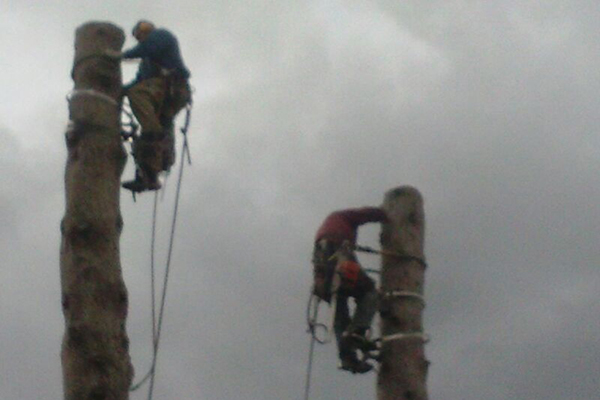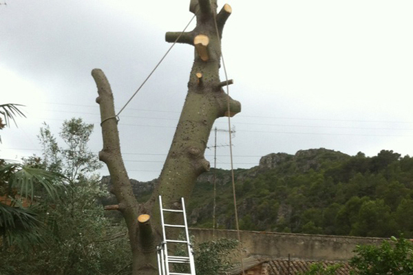 Estos trabajos se realizan trepando a través del tronco con sistemas totalmente manuales hasta la copa y posteriormente realizando la tala seccionando el ejemplar de arriba a abajo. Se utilizan los medios manuales en lugares donde exclusivamente no se puede acceder mediante elementos mecánicos.
